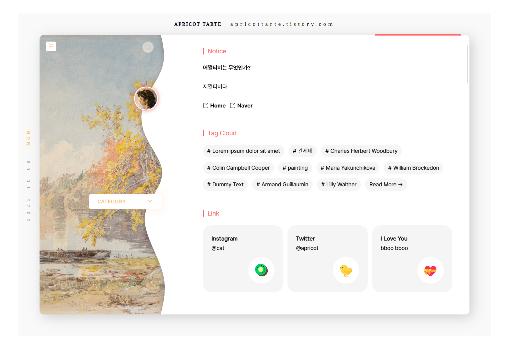 - [홈 커버 9종] : 공지사항, 태그 클라우드, 디데이, 링크, 카드, 리스트, 갤러리, 갤러리2, 웹진